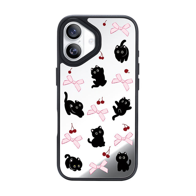 NIMASO iPhone 17/Pro/Pro Max/Air用 ケース MagSafe対応 ミラー かわいい おしゃれ 耐衝撃 ワイヤレス充電対応(ファンシーシリーズ)ブラックキャット