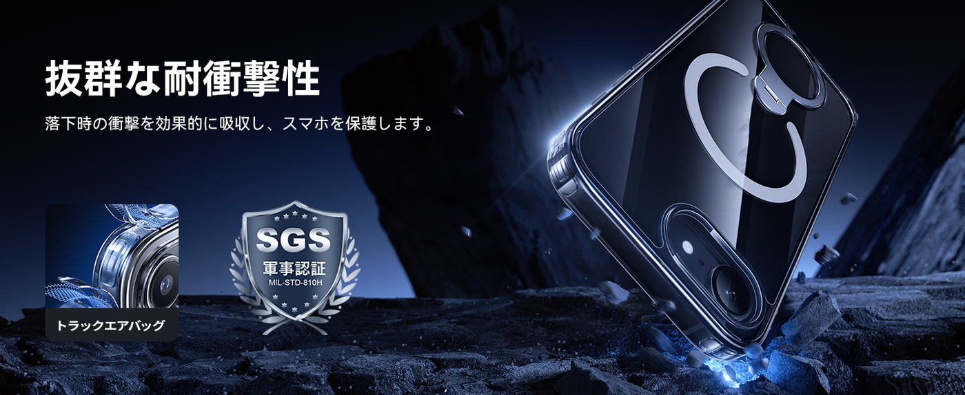 - 【四隅のエアバッグ保護 ・耐衝撃性抜群】背面と側面はそれぞれPC(ポリカーボネート)とTPU(熱可塑性ポリウレタン)素材で設計され、世界で有名な米国防総省が規定する米軍採用品規格「MIL-STD-810H」認証を取得済み(認証番号:GZMR220802604601)。携帯ケースの四隅にクッションエアバッグを追加し、外部からの衝撃を吸収できます。落下や衝撃からしっかりスマホを守ります。