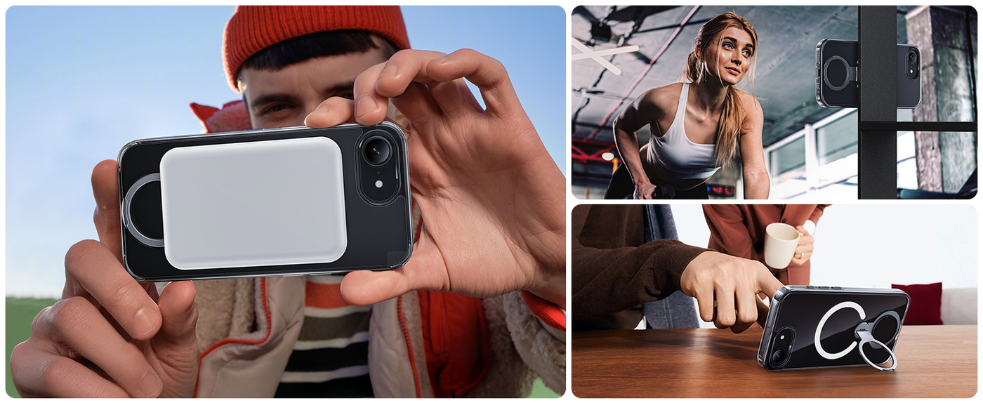 NIMASO iPhone 16eケース 360°回転スタンド付き MagSafeアクセサリー対応 クリア(アップグレード版)