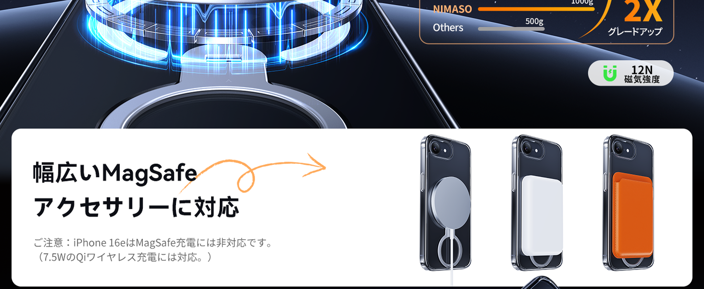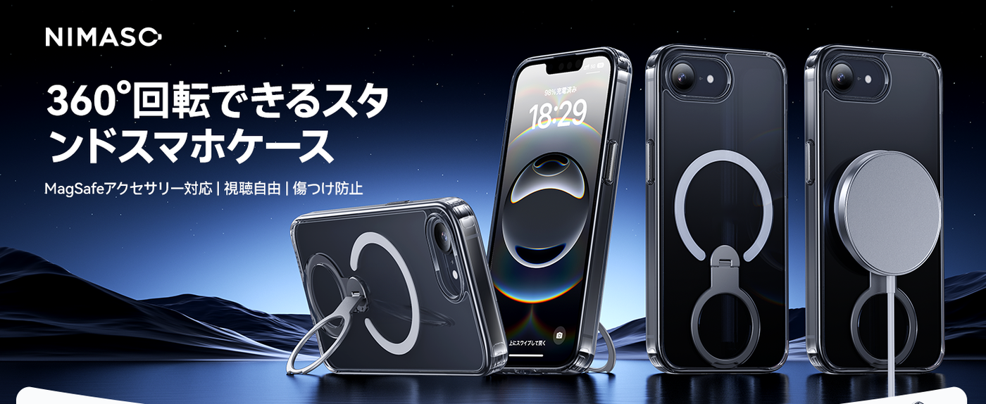 NIMASO iPhone 16eケース 360°回転スタンド付き MagSafeアクセサリー対応 クリア(アップグレード版) - iPhone 16e ...は取り寄せ中で入荷次第発送します。