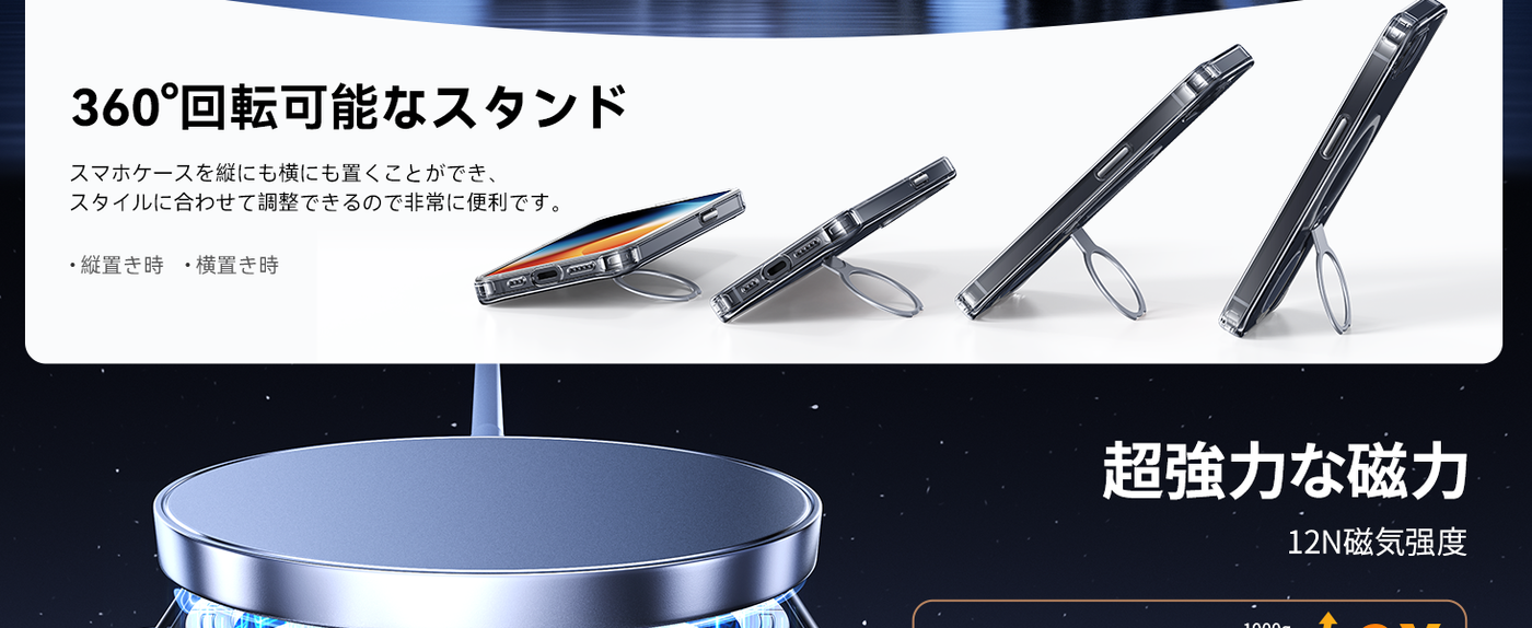 - 【360°回転スタンドケース ・縦も横も自由自在】市販の固定式スタンドケースとは異なり、アイホン16e対応スタンドケースは360度回転に対応。オンライン会議や友人とビデオ通話をするときは縦置きにして、動画をじっくりと視聴する時は横置きにと、お好きな角度に調整できます。円形の回転スタンドを回転させると「カチカチ」と快い音が鳴り、ストレス解消としてもお役立ちできます。