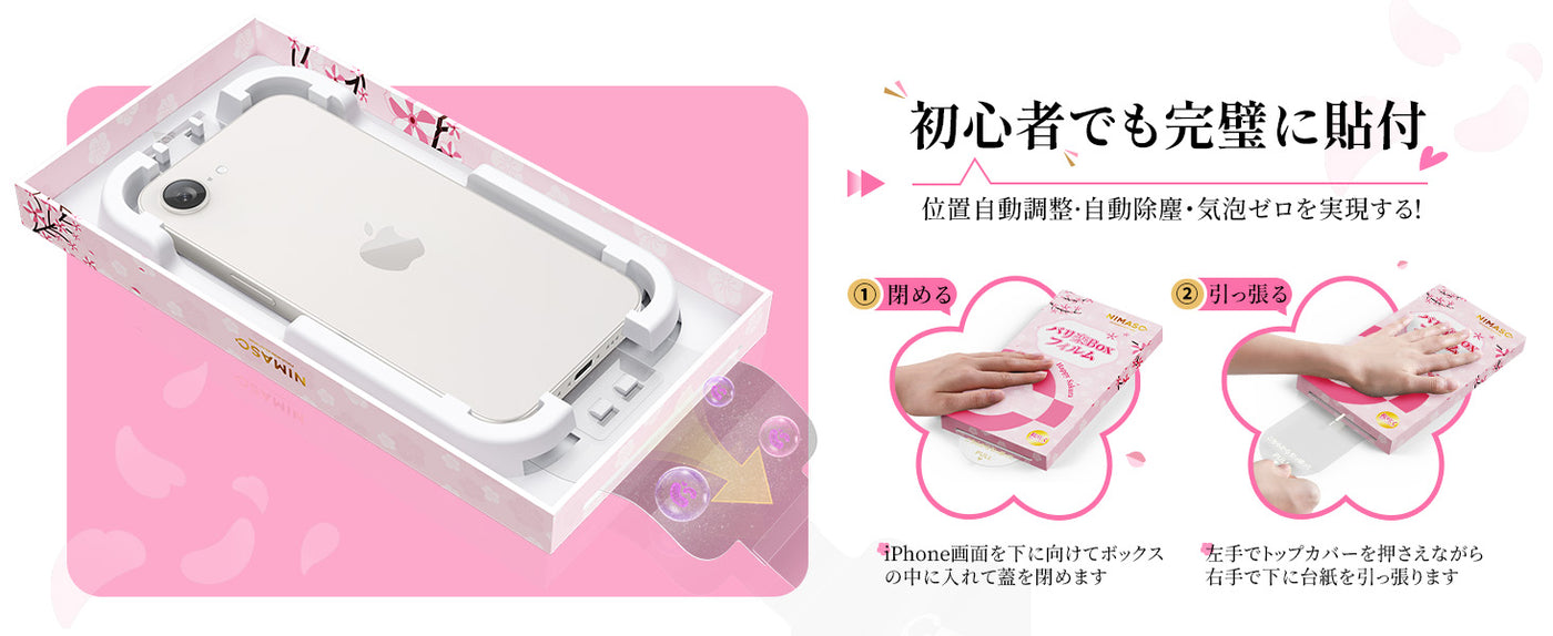 【桜咲く限定】NIMASO iPhone 16e/14/13 Pro/13 強化ガラスフィルム アップグレード版[バリ楽Box」ガイド枠付き【2枚】