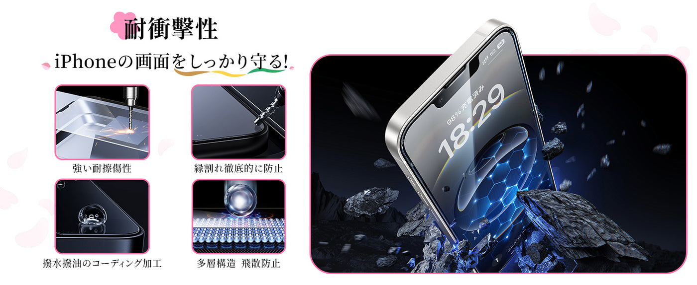 全面保護:米軍規格に準拠の9H硬度ガラス採用、鍵や硬いものによる傷を防ぎ、落下時の衝撃からもしっかり保護できます。