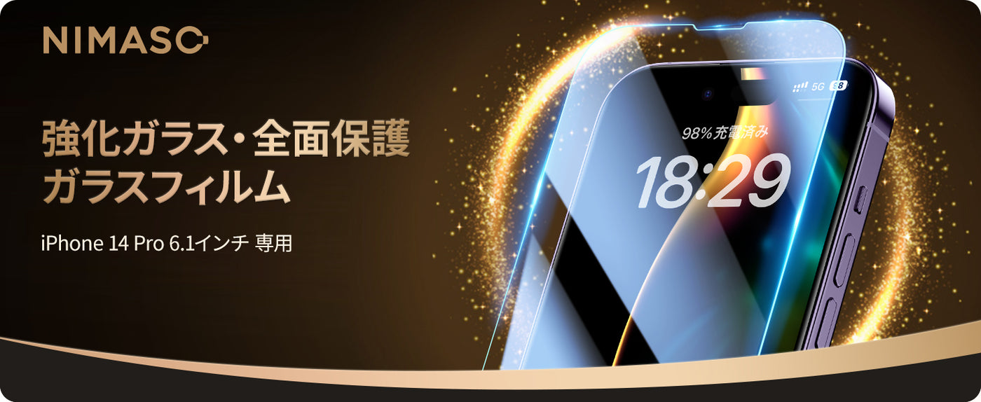 NIMASO iPhone 16e/14 Pro Max/14 Pro/14 Plus/14/13 Pro Max/13 Pro/13 mini/13 強化ガラスフィルム 黒縁なし ガイド枠付き【2枚】