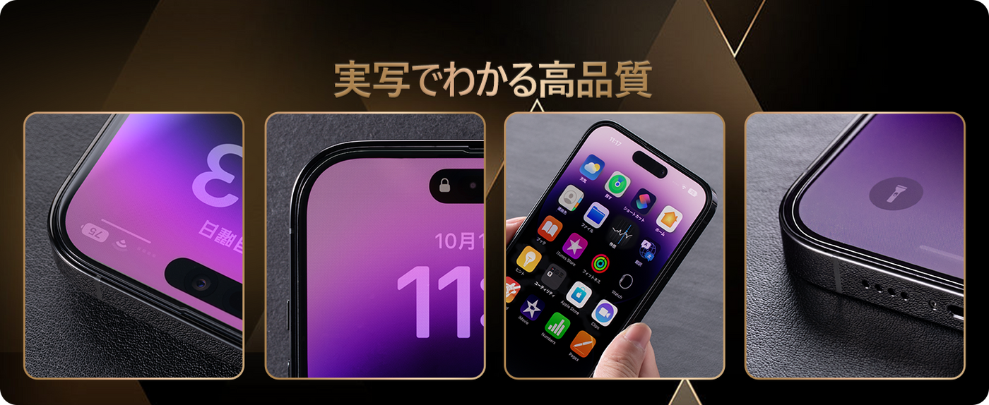 最新の高透過率ガラスを採用。液晶画面本来の鮮やかな色味や明るさを損なわず、タッチ操作もスムーズに行えます。iPhone14 / 14 Plus / 14 Pro / 14 Pro Maxのスクリーン保護フィルムとして、映像やゲームの美しさをそのまま楽しめます。