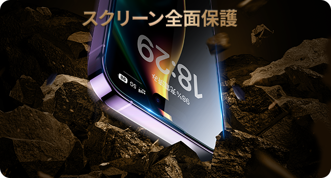 耐傷性に優れた9H硬度の強化ガラスを使用し、ハードコーティング技術で衝撃を吸収。万一割れても飛散防止加工によりガラス破片が飛び散らず安全です。