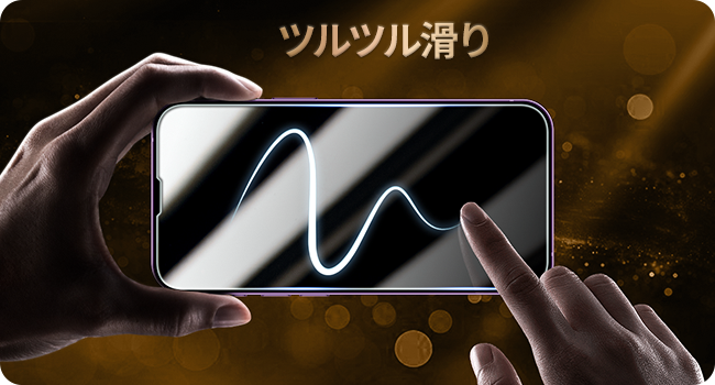 高透過率を持つ極薄ガラスフィルムに高耐久撥油コーティングが施され、画面の精細さを保ち、指紋や汚れが付きにくくなります。美しい画面と滑るような指さわりのスムーズな操作を体感いただけます。