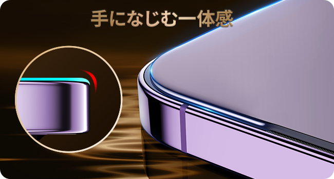 iPhone本体との一体感を高め、美しさを引き出せます。さらに2.5Dラウンドエッジ加工が施され、スライドしても引っかかり感がなく、裸さながらの質感を実現します。