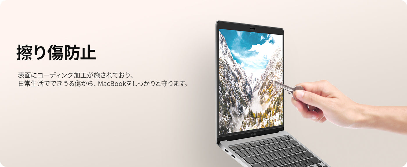 - 【ハードコーティング加工】表面にあるハードコーティング加工によって、日常生活でできうる傷から、スクリーンを守り、いつでもきれいな画面を保ちます。