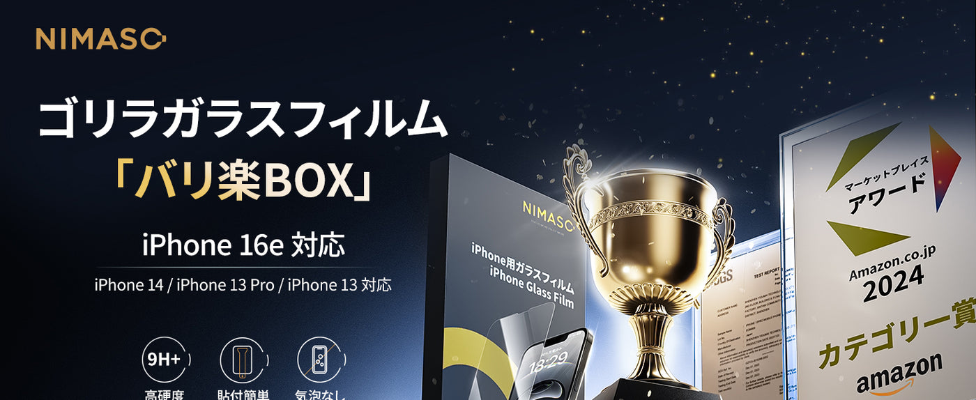 ![NIMASO iPhone 16e/14/13 Pro/13 "Vari-Raku Box" Tempered Glass Film with Guide Frame, No Black Border [2 Sheets]](http://nimaso.co.jp/cdn/shop/files/iphone16e-14-13pro-13-gorillaglass-screen-protector-hb-4.jpg?v=1769668509&width=1214)
