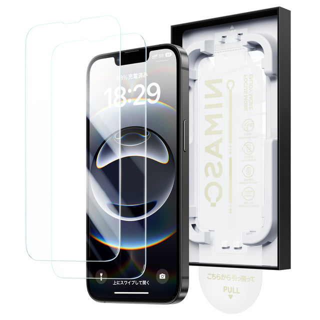 NIMASO iPhone 16e/14/13 Pro/13 "Vari-Raku Box" Tempered Glass Film with Guide Frame, No Black Border [2 Sheets]