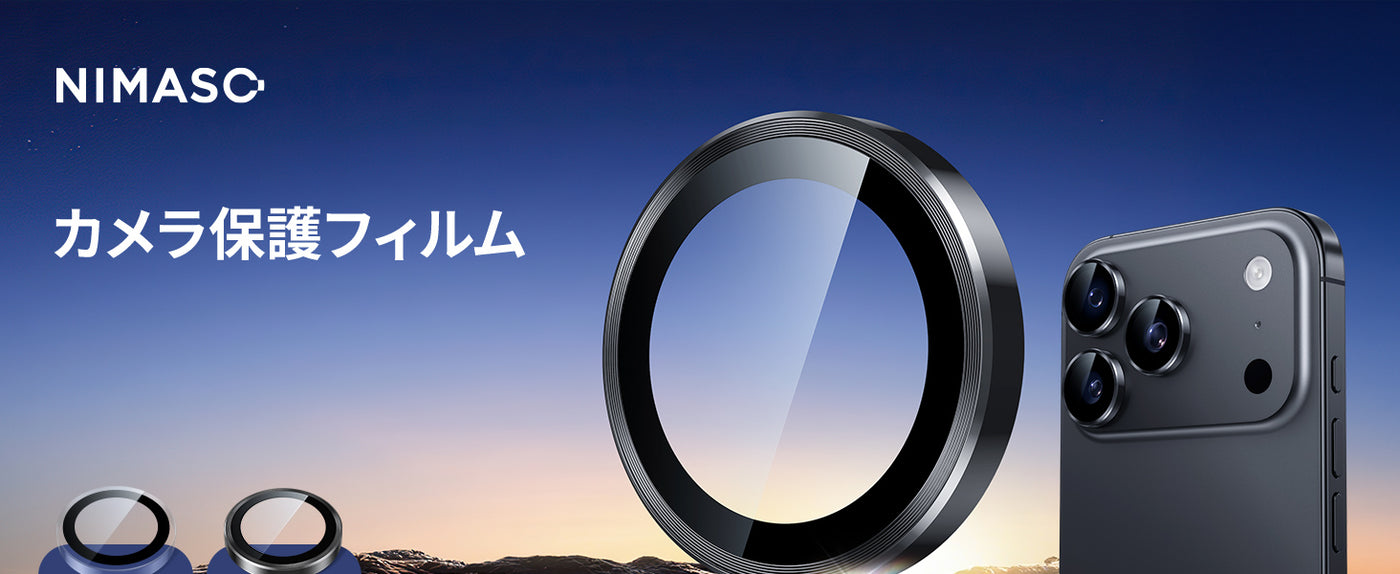 NIMASO iPhone 17/Pro/Pro Max/Air用 カメラフィルム 黒縁取り ガイド枠付き【2枚】