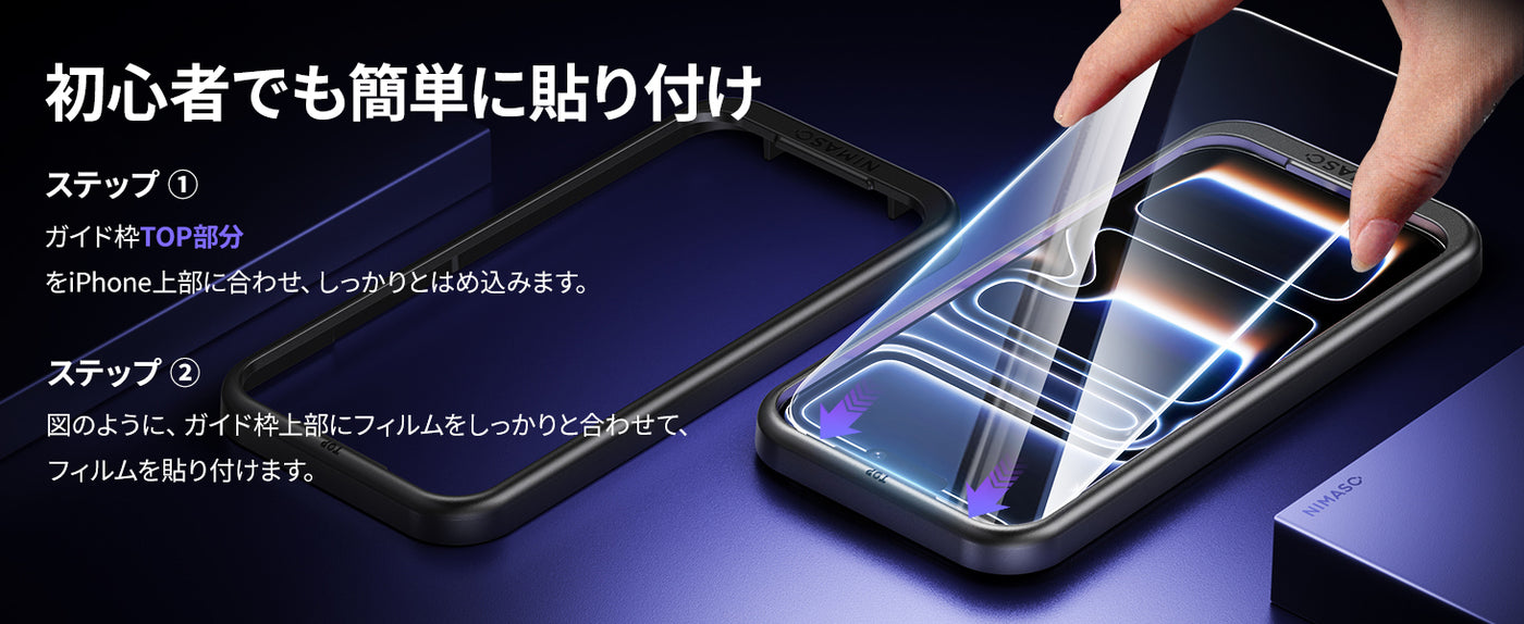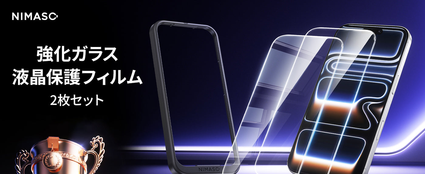 NIMASO iPhone 17/Pro/Pro Max/Air用 強化ガラスフィルム 耐衝撃 ガイド枠付き【2枚】