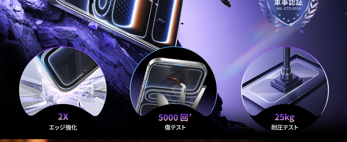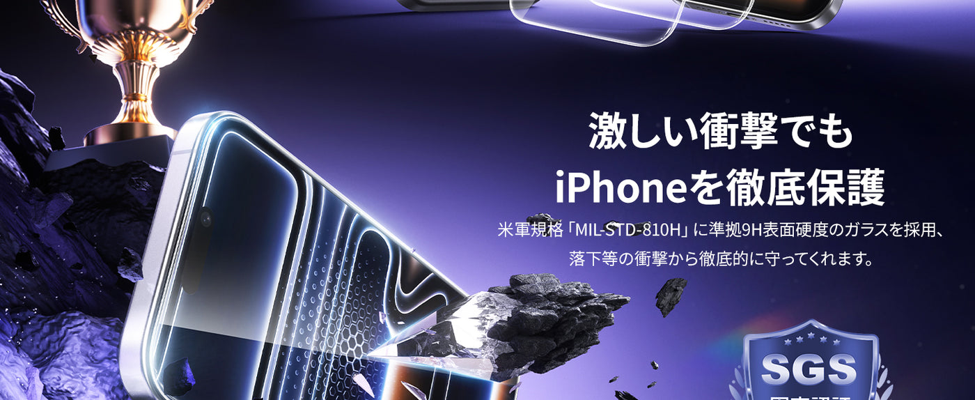 - 【耐衝撃・飛散防止】米軍規格【MIL-STD-810H】に準拠(認証番号:SZXEC23002005001)9H表面硬度ガラスを採用しており、外部からの衝撃を吸収し、画面へのダメージを最小限に抑えます。鞄やポケットのなかで鍵などの鋭いものにぶつかっても傷が付きにくいです。飛散防止加工により、万が一割れてもガラス破片が飛び散ることなく安心して使えます。