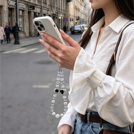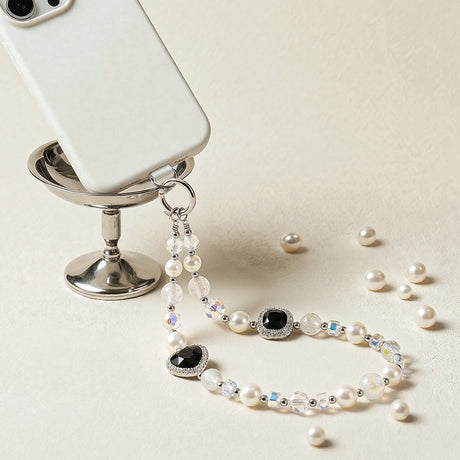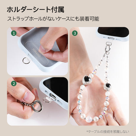 NIMASO スマホストラップ ビーズチェーン 黒のクリスタルハート 1本