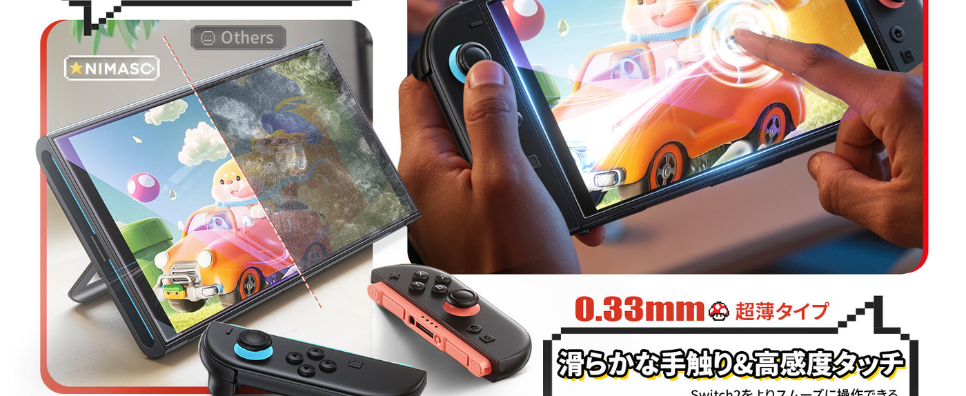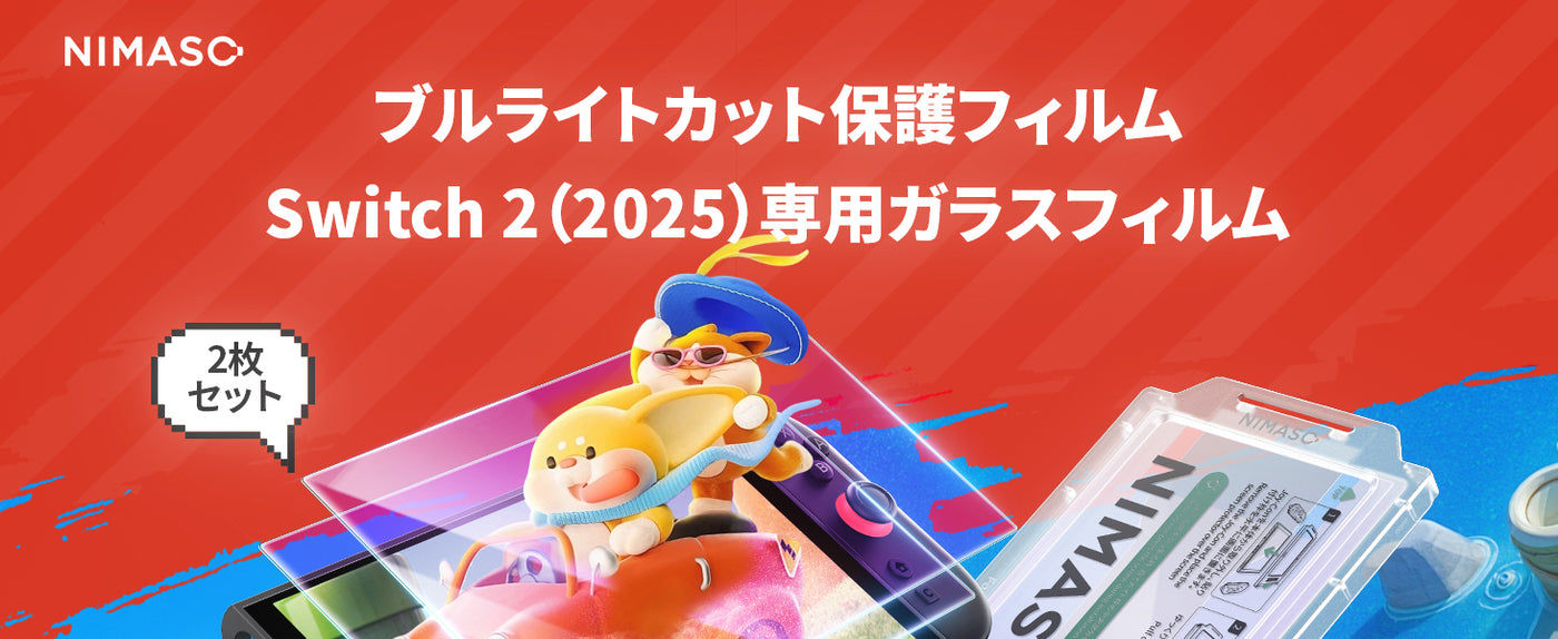 NIMASO ブルーライトカット Nintendo Switch 2用 保護フィルム 目の疲れ軽減 指紋防止 高感度タッチ 9H硬度 ガイド枠付き 2枚入り