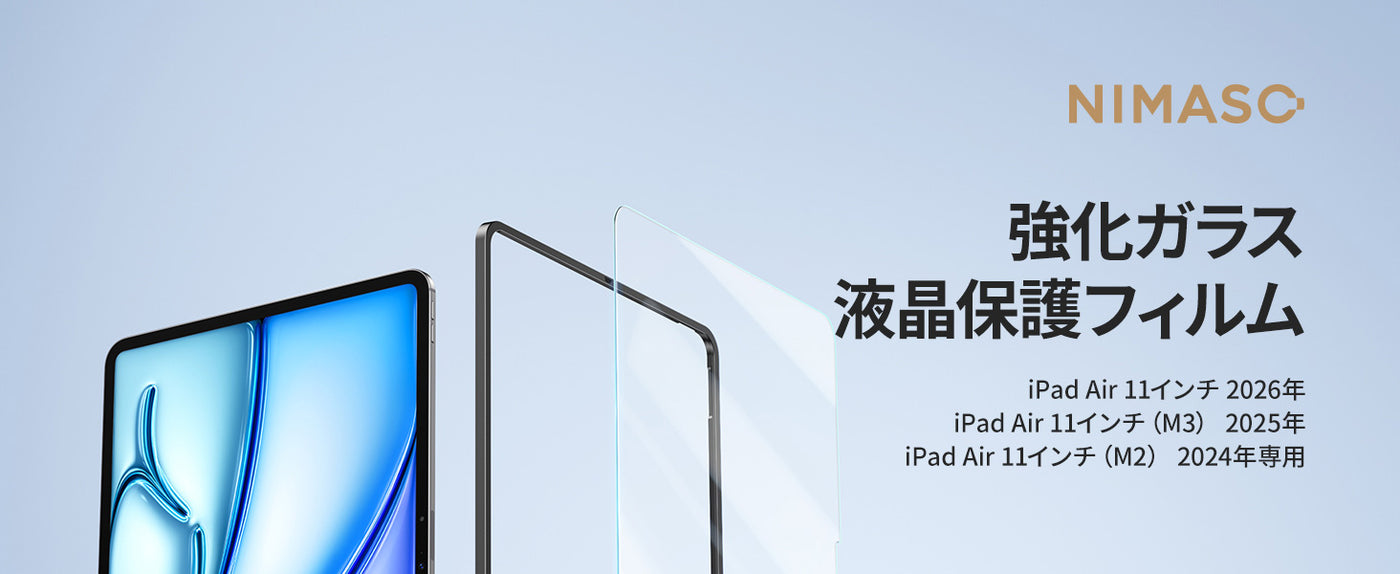 - 対応機種:iPad Air 11 第8世代 Air8 M4 2026年用/iPad Air 11 第7世代 Air7 M3 2025年用/iPad Air 11 第6世代 Air6 M2 2024年用(ご注意:iPad Pro 11 2024/iPad Pro11 2022/ iPad Air 第5世代/iPad Air 第4世代/iPad Pro11 2021 第3世代/iPad Pro11 2020 第2世代/iPad Pro11 2018 第1世代は対応できません。)