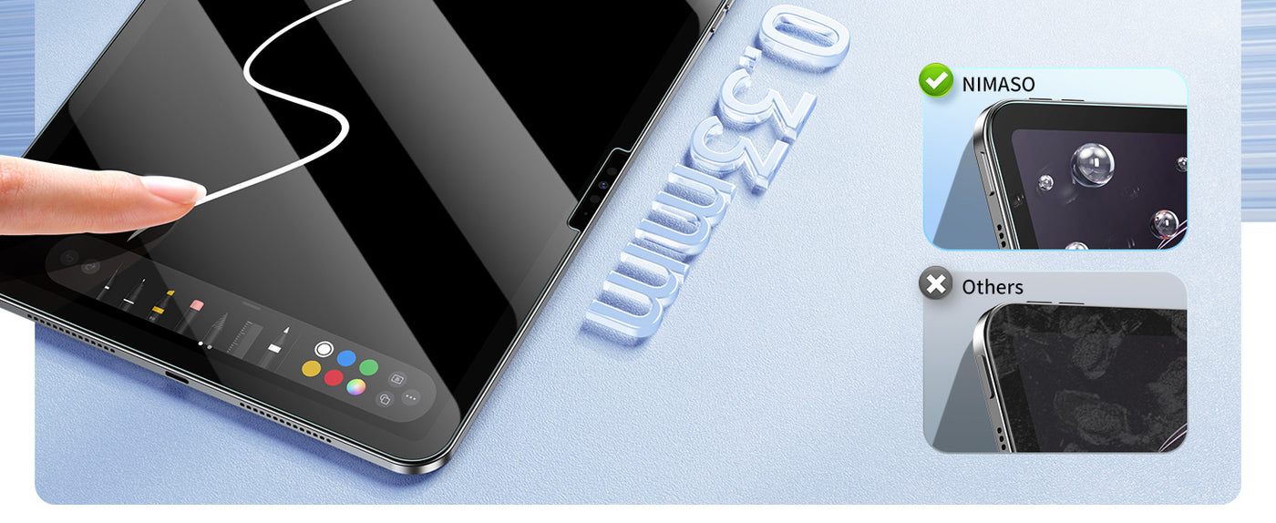- ケースと干渉せず:ipad air11 ケースに対応させるため、ガラスフィルムはスクリーンよりやや小さいように設計されています。スクリーンにもっと密着することもできます。ケースとの干渉を気にする必要はありません。