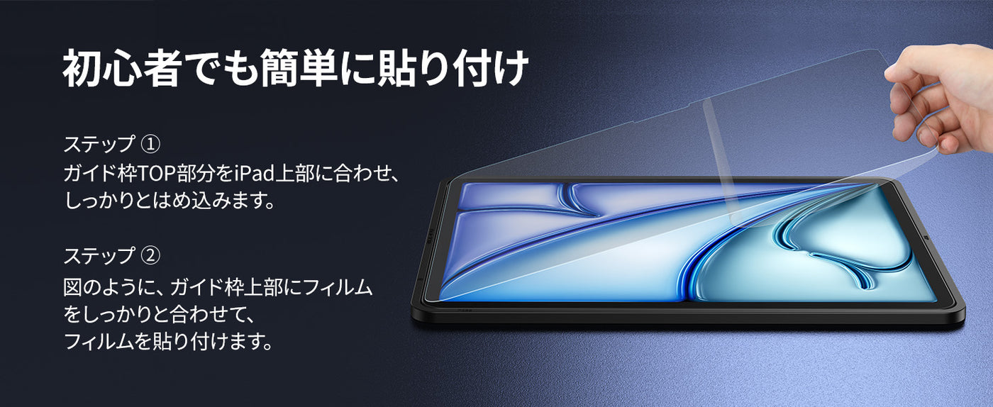 - 高透過率:厚さ0.33mmの超薄型で、驚くほど高い透明度を誇っており、画面の鮮明さや美しさを損なわずにiPad Air 11本来の美しい画面をお楽しみいただけます。画面上の操作も違和感なくスムーズに行えます。