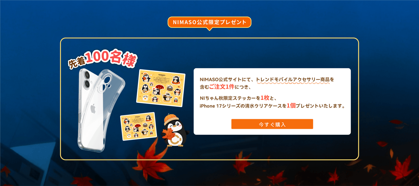 ✨17シリーズのトレンドケース&アクセのご購入でクリアケース+秋限定ステッカー進呈!