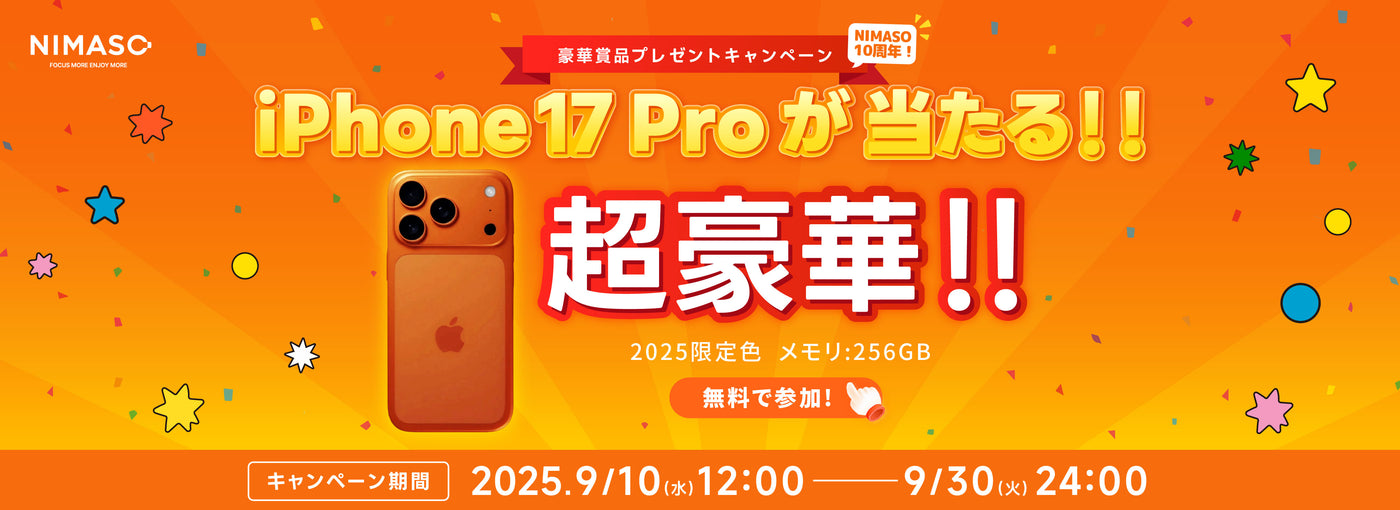 4、当選者への連絡:当選者には、10月9日より順次、応募時にご登録いただいたメールアドレス宛てに当選通知メールをお送りいたします。当選者へのご連絡は、NIMASO JAPAN公式メールアドレス[event@nimaso.co.jp]からのみ行い、ご登録いただいたメールアドレス宛にお送りします。ご登録メールアドレスの設定により、当社からのメールが届かない場合がございますので、迷惑メールフィルターの解除やドメイン指定の許可など、適切な設定をお願いいたします。