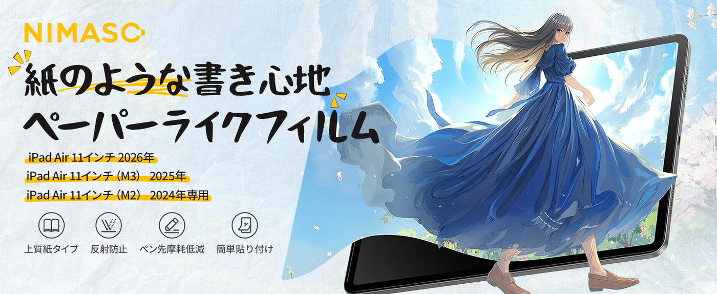 NIMASO ペーパーライクフィルム iPad Air 11インチ M4 2026用/M3 2025用/M2 2024用 アンチグレア 反射低減 指紋防止 紙のような描き心地 位置決めガイド付き