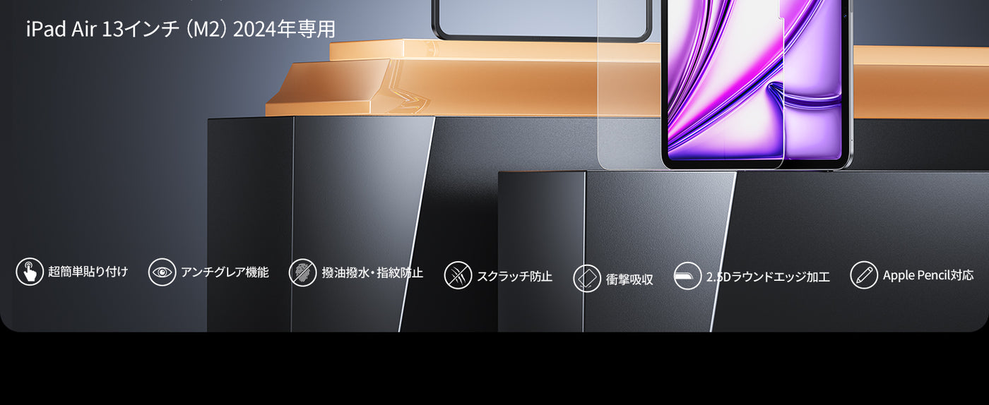 - 対応機種:iPad Air 13 M4 2026用/ iPad Air 13インチ 2025年 M3チップモデル用/ 2024年 M2チップモデル用。(ご注意:iPad Pro12.9 2022 第6世代/iPad Pro12.9 2021 第5世代/iPad Pro12.9 2020 第4世代/iPad Pro12.9 2018 第3世代は対応できません。)