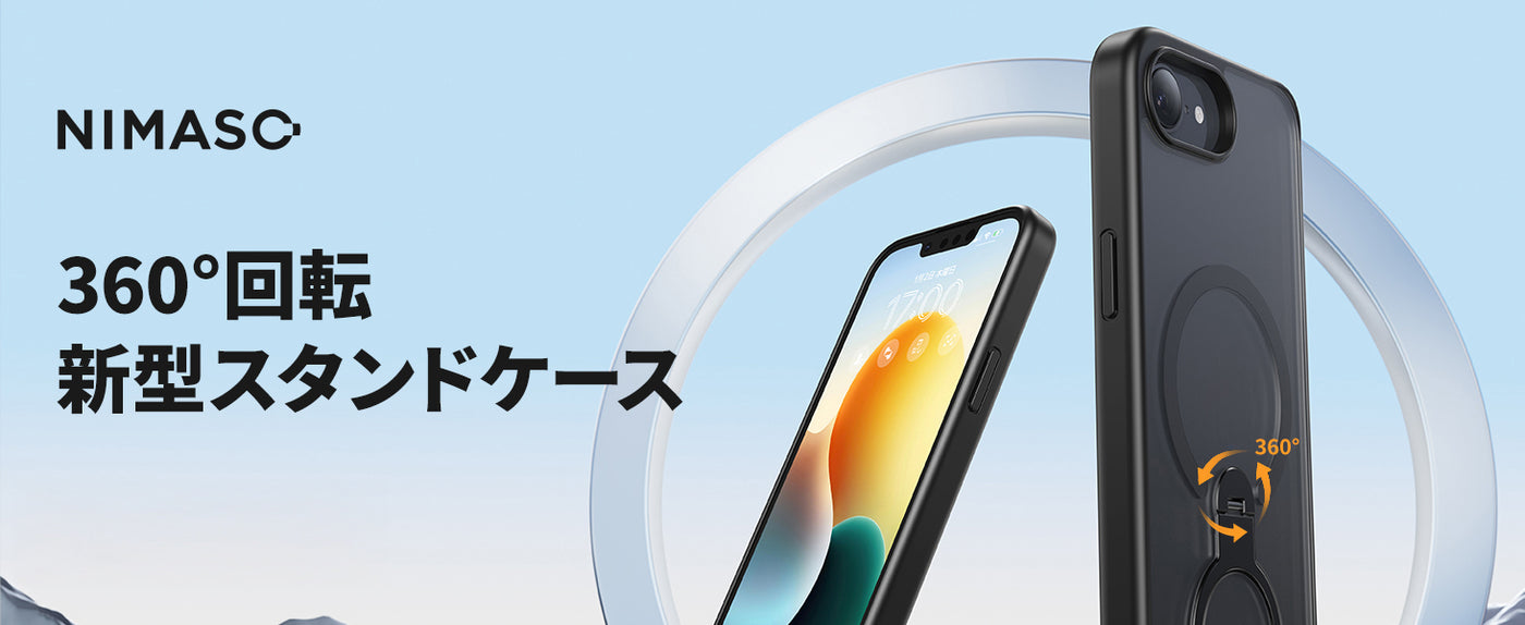 NIMASO iPhone 17e/16eケース 360°回転リングスタンド 横縦両立 MagSafeアクセサリー対応(黒羽シリーズ)