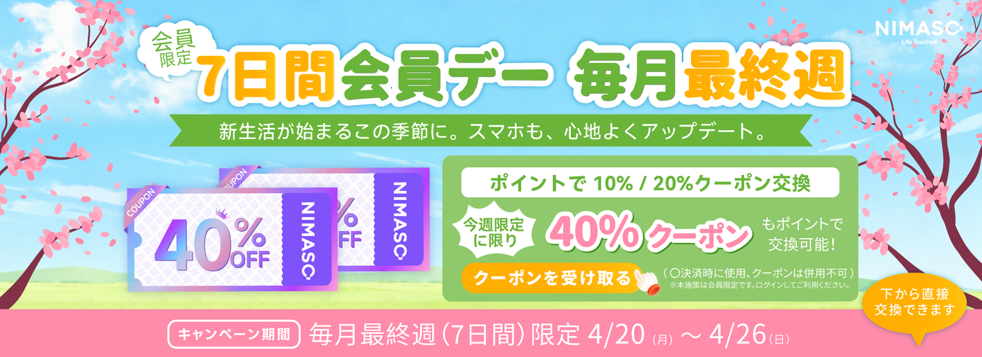 会員限定|最大40%OFFクーポン交換できる!