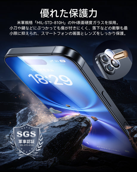 - 売切れ20% OFFNIMASO iPhone 17/17 Pro/17 Pro Max用 ガラスフィルム (2枚) + カメラフィルム (2枚) 硬度9H 耐衝撃 ガイド枠付き ¥1,759¥2,199単価 /利用不可